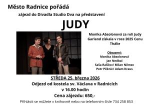 Město Radnice pořádá zájezd do divadla Studio Dva v Praze na představení Judy.