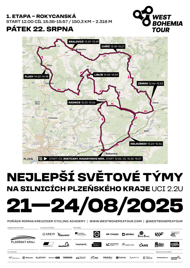 Město Rokycany upozorňuje na blížící se konání cyklistického závodu West Bohemia Tour, jehož trasa povede i přes území města Radnic v pátek 22. srpna 2025.