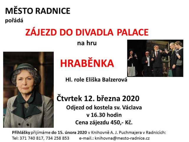 Město Radnice ruší zájezd do Divadla Palace na hru Hraběnka, který se měl uskutečnit ve čtvrtek 12. března v hlavní roli s Eliškou Balzerovou.