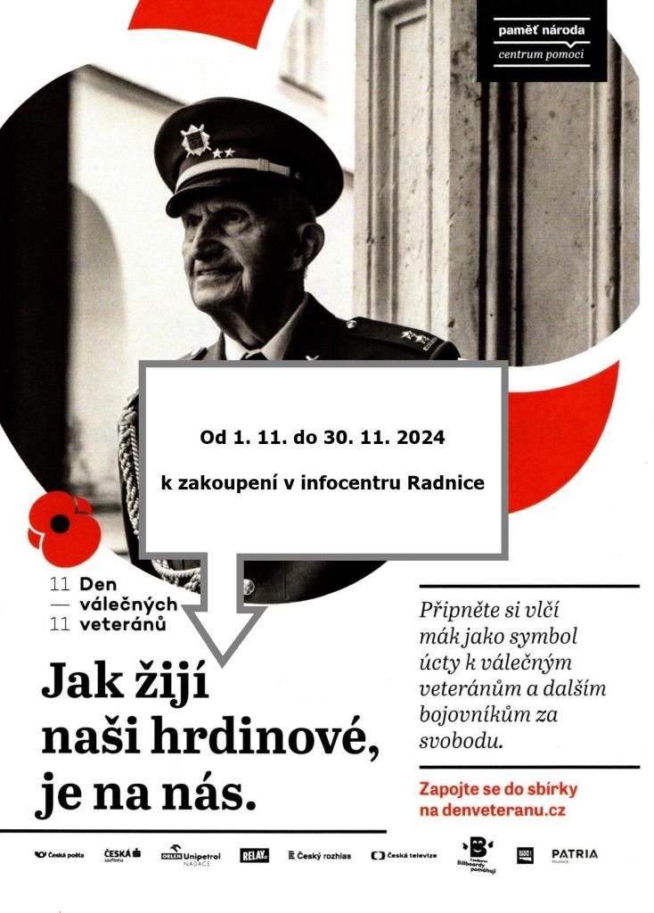 Infocentrum Radnice se v letošním roce zapojilo do sbírky na podporu válečných veteránů. Po celý listopad můžete v infocentru zakoupit květy vlčích máků. Připnutím vlčích máků projevíte úctu válečným veteránům a dalším bojovníkům za svobodu.