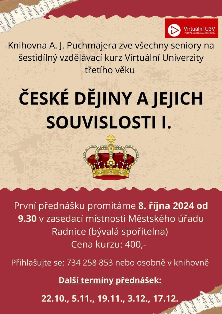 Studovat budeme České dějiny a jejich souvislosti I. Přihlašovat se můžete: tel. 734 258 853, knihovna@mesto-radnice.cz nebo osobně v knihovně.