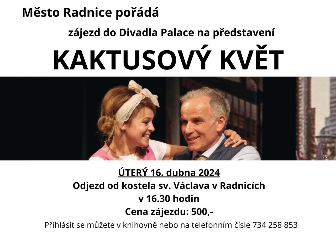 Město Radnice pořádá zájezd do Divadla Palace na představení "KAKTUSOVÝ KVĚT"