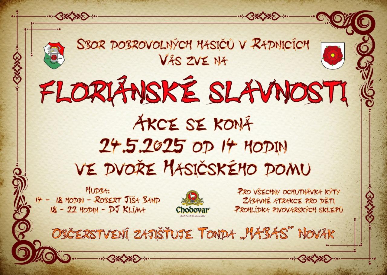 Sbor dobrovolných hasičů Radnice vás srdečně zve na tradiční Floriánské slavnosti.