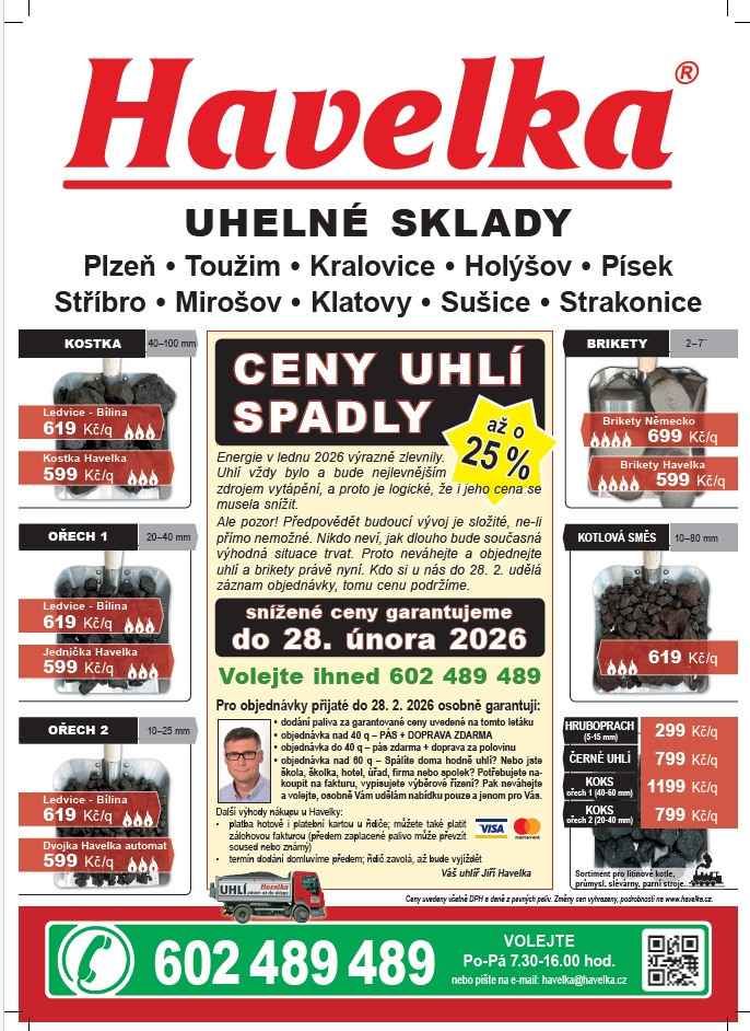 U firmy Havelka – uhelné sklady právě spadly ceny uhlí až o 25 %. Na jedné fůře můžete ušetřit až 15 tisíc korun.