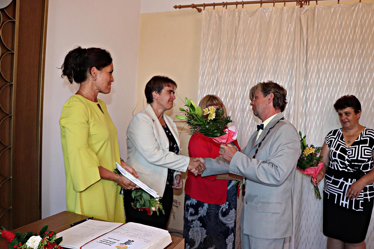 Společně s paní učitelkou Alenou Mankovou jim popřál hezké prázdniny a mnoho úspěchů ve škole. Děti si připravily krátké pásmo, a poté se podepsaly do pamětní knihy města a jako dárek dostaly knihu. Paním učitelkám Aleně Mankové, Monice Hűbnerové a Ireně Strýcové předal starosta květiny.