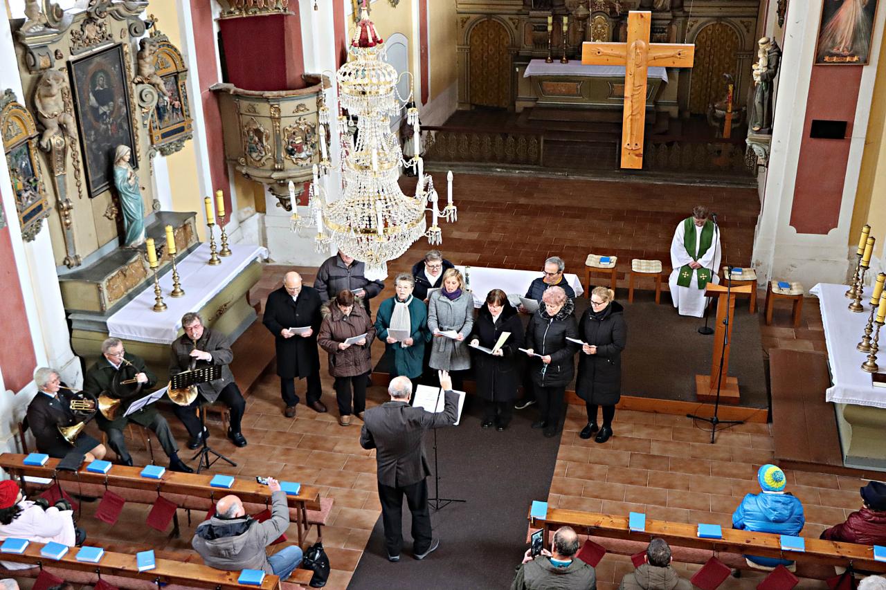 Soubor brdských trubačů společně se smíšeným pěveckým sborem SDO Radnice nadchli v neděli 26. listopadu 2023 zaplněný kostel svatého Václava během Hubertské bohoslužby.