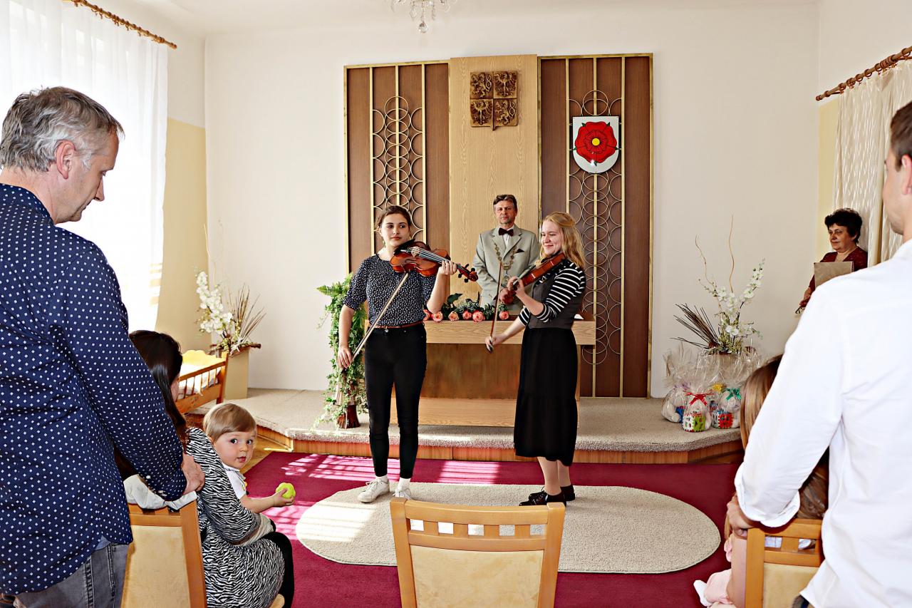 K rodičům promluvil starosta Jan Altman. S kulturní vložkou vystoupily Karolínka Šnebergová a Amálka Denková. Poté se rodiče zapsali do pamětní knihy města. Maminky obdržely květinu a dětičky dárek. Pan starosta přivítal tyto občánky: Viktorie Alblová, Madlen Cozlová, Michal Maštera, Jiří Procházka a Jiří Škopek.
