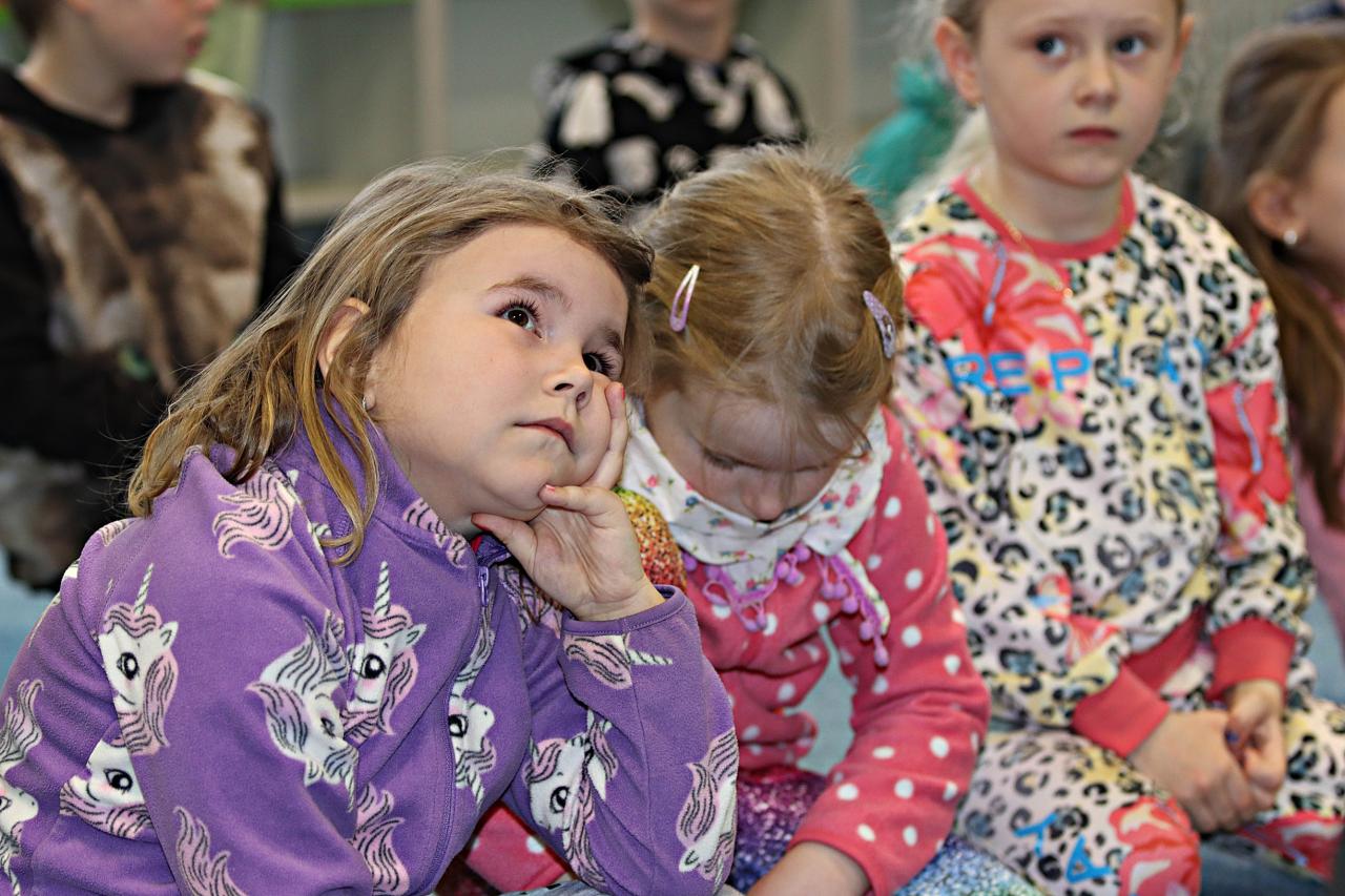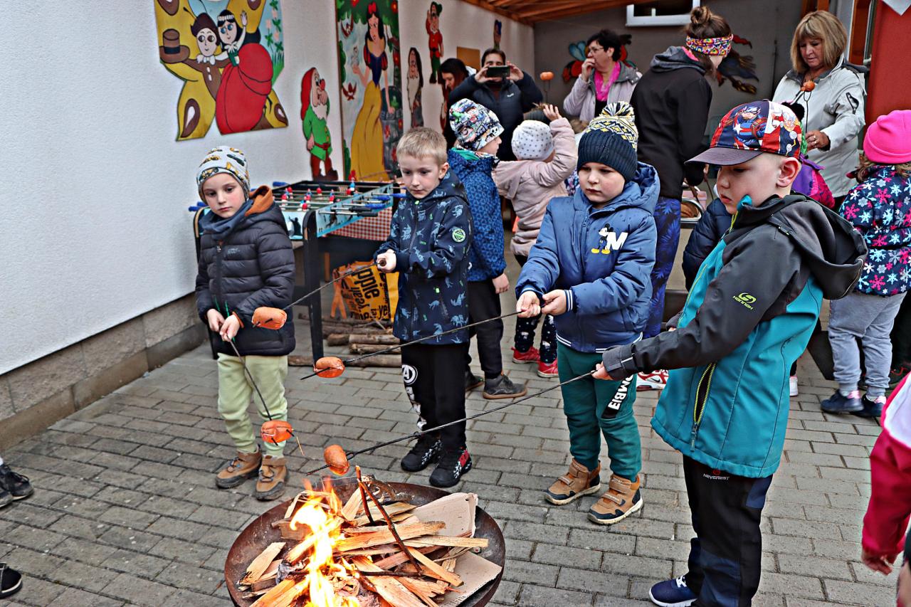 Chlapci a děvčata nejprve zavítali do knihovny, kde byl pro ně přichystaný program. Dětem patřičně vyhládlo, proto se občerstvily opékanými špekáčky. Poté je čekala cesta pohádkovou stezkou. Předškoláci na dnešní večer a noc jen tak nezapomenou, protože je čeká přespání ve školce.
