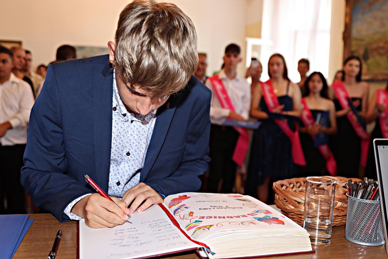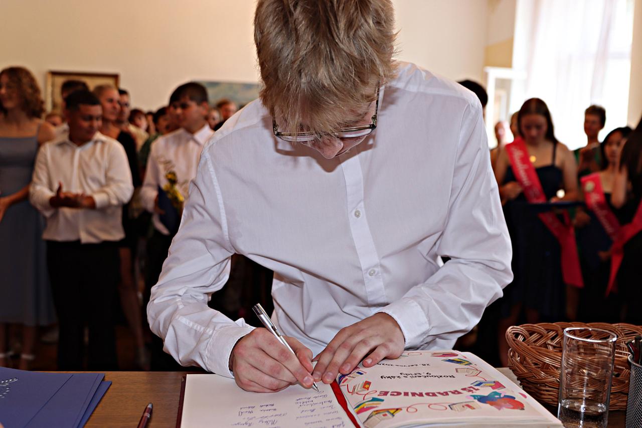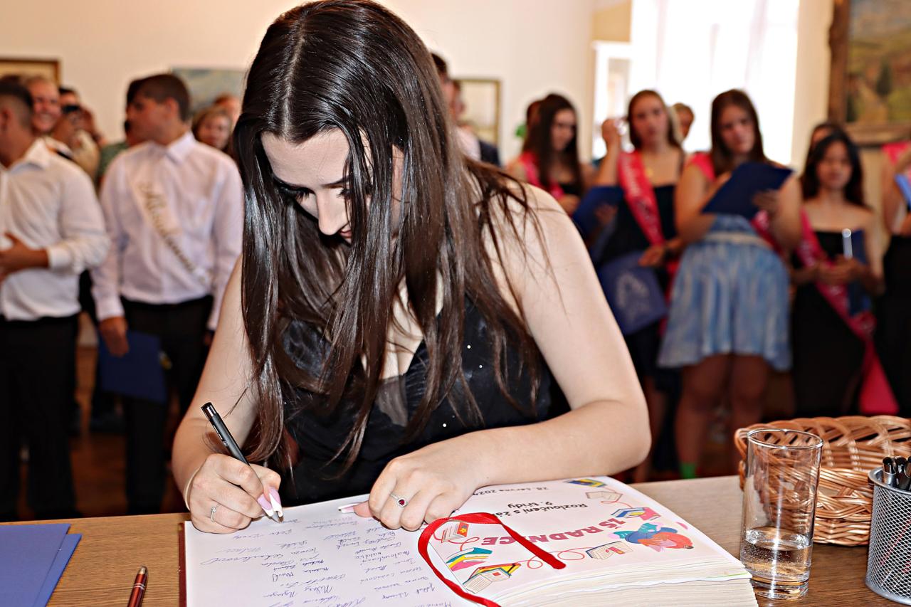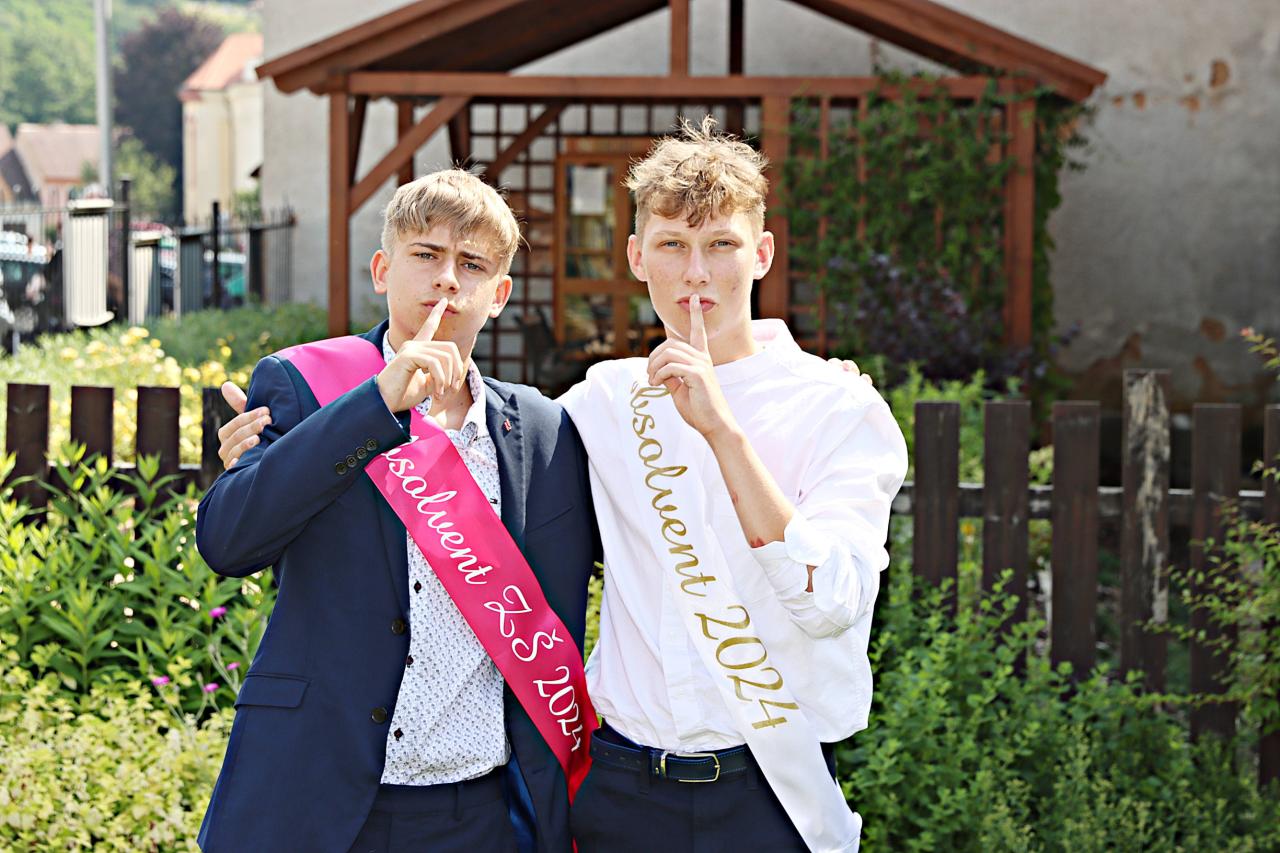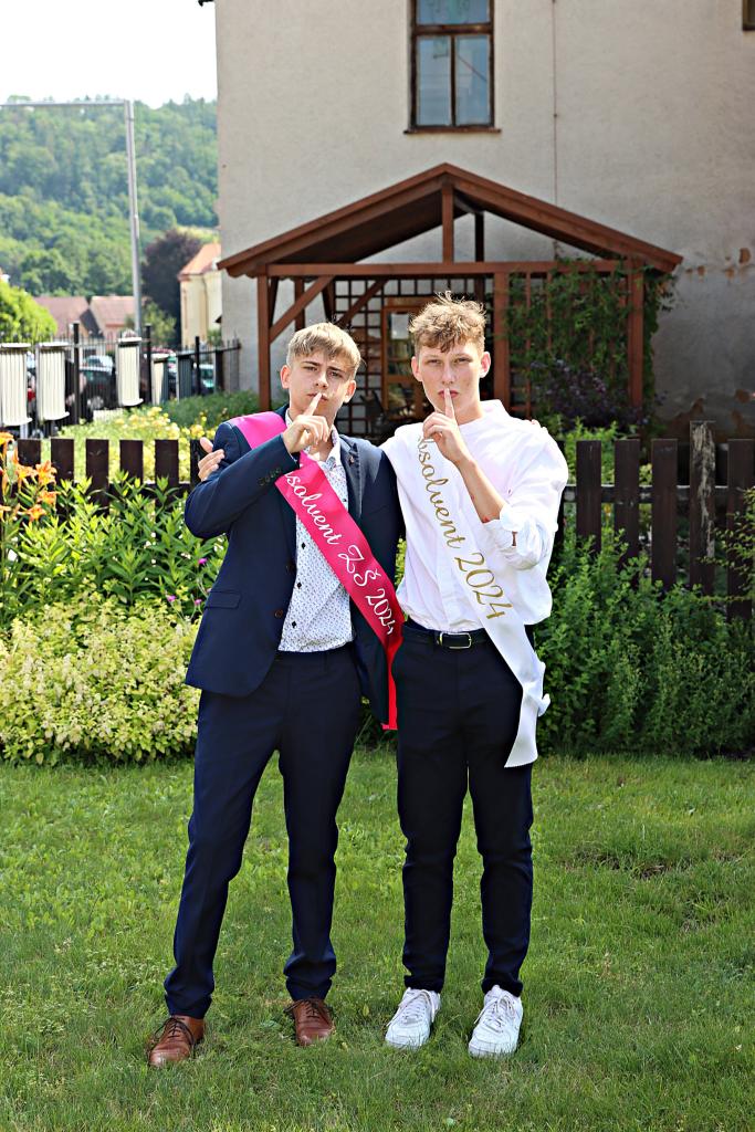 V pátek 28. června 2024 proběhlo v obřadní síní městského úřadu slavnostní vyřazení deváťáků. Paní ředitelka Raková a místostarosta města František Blovský popřáli žákům co nejlepší vstup do nové etapy života. Nechyběl medailonek obou tříd, a poté přišlo na řadu stužkování a podpis do pamětní knihy.