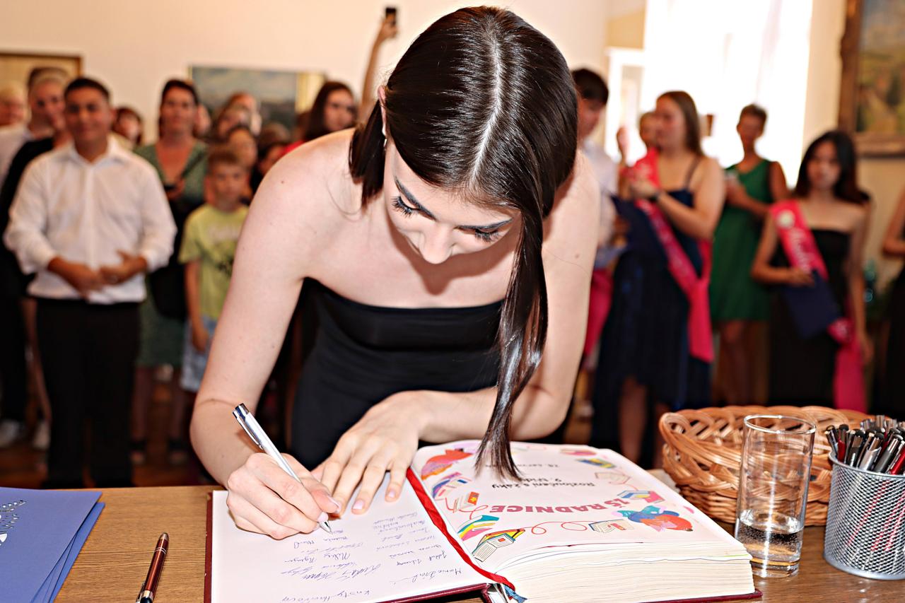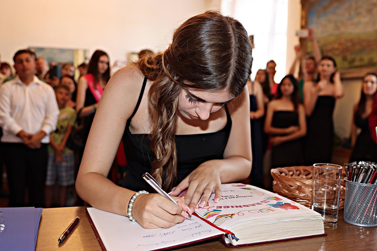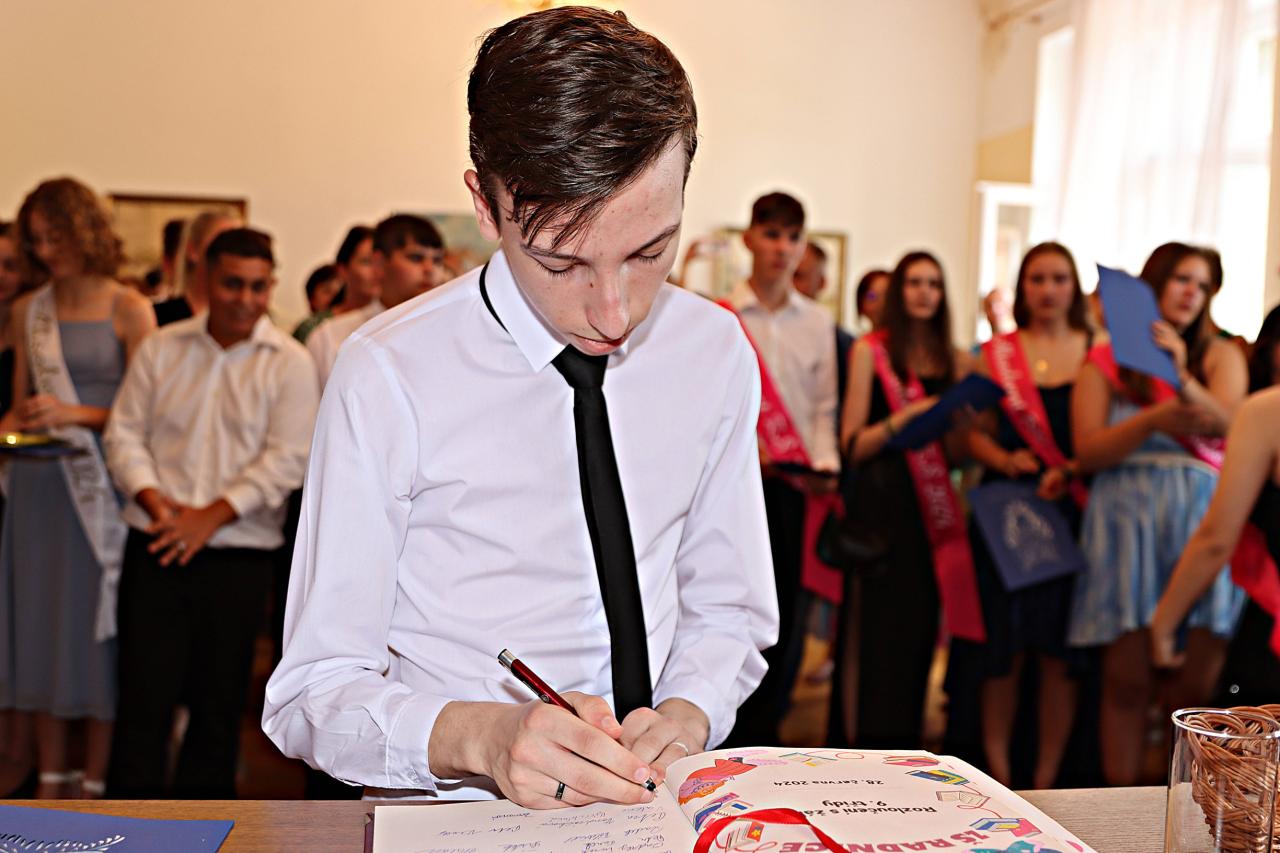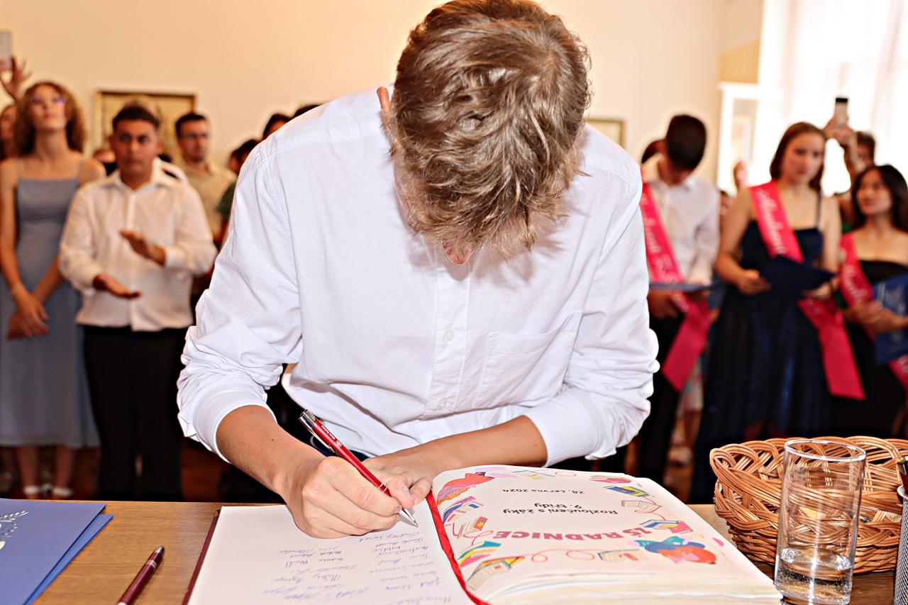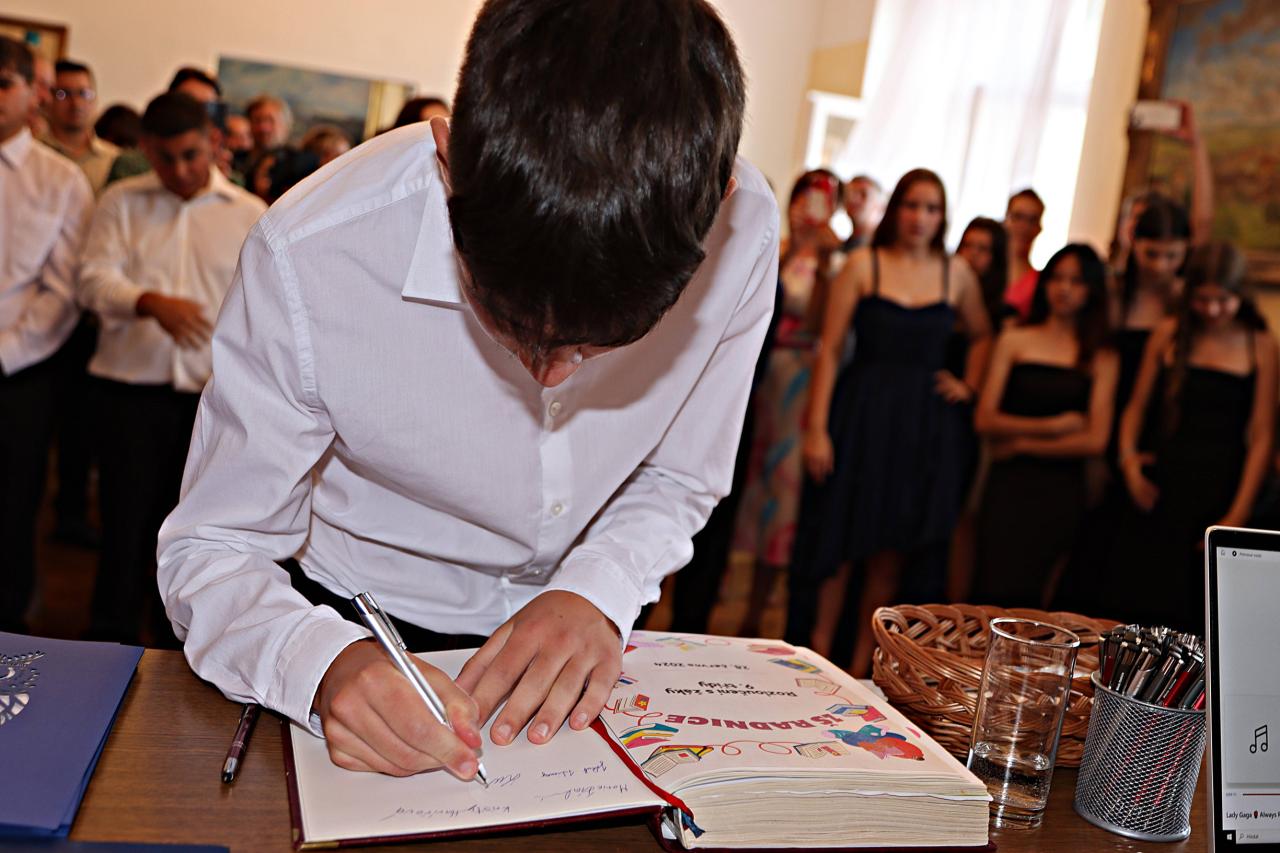V pátek 28. června 2024 proběhlo v obřadní síní městského úřadu slavnostní vyřazení deváťáků. Paní ředitelka Raková a místostarosta města František Blovský popřáli žákům co nejlepší vstup do nové etapy života. Nechyběl medailonek obou tříd, a poté přišlo na řadu stužkování a podpis do pamětní knihy.