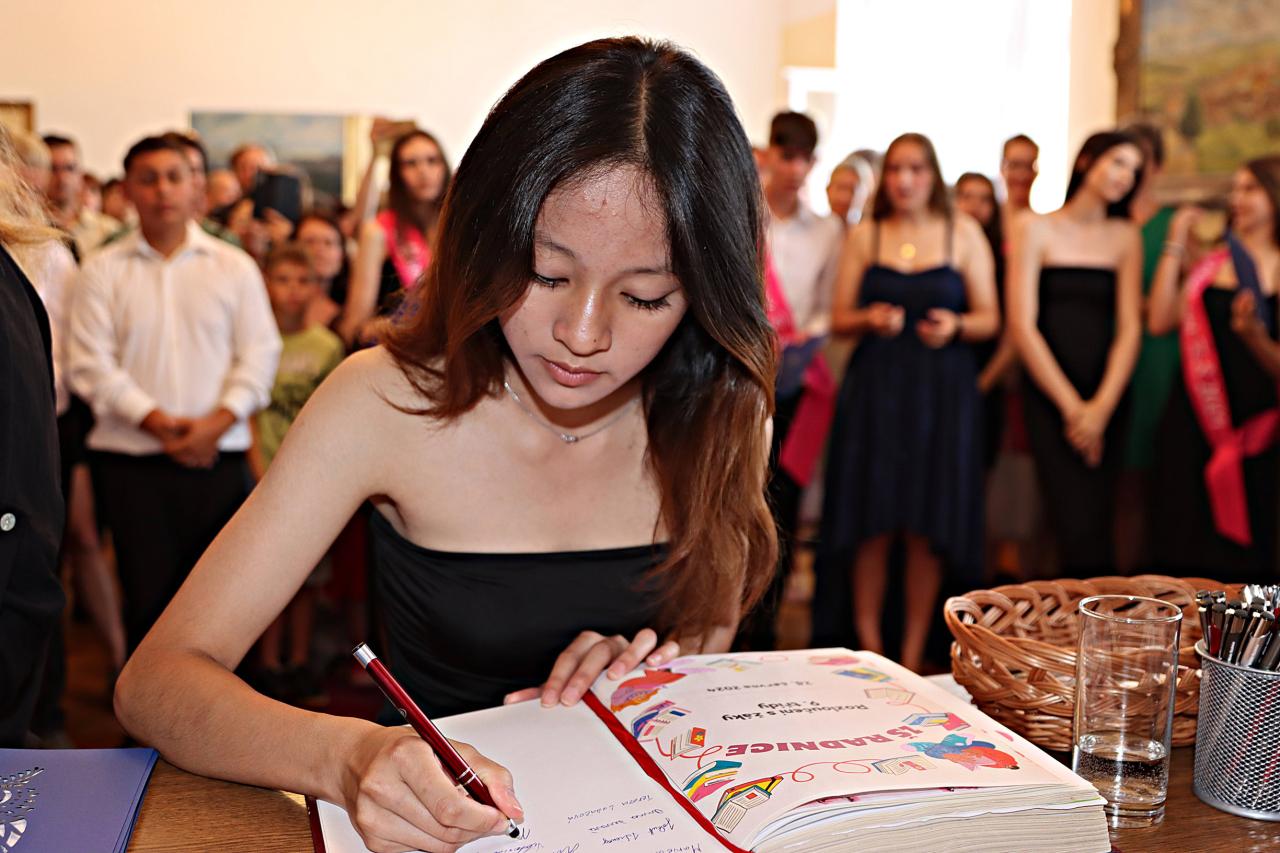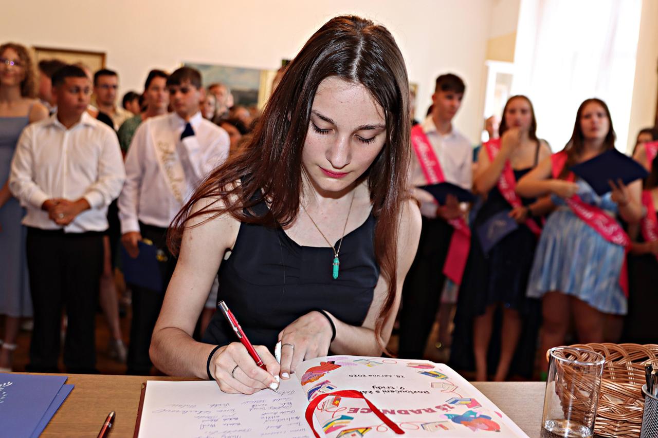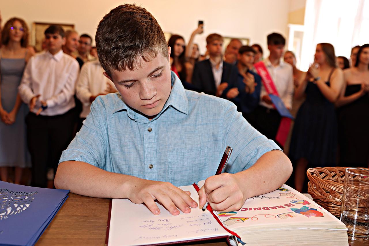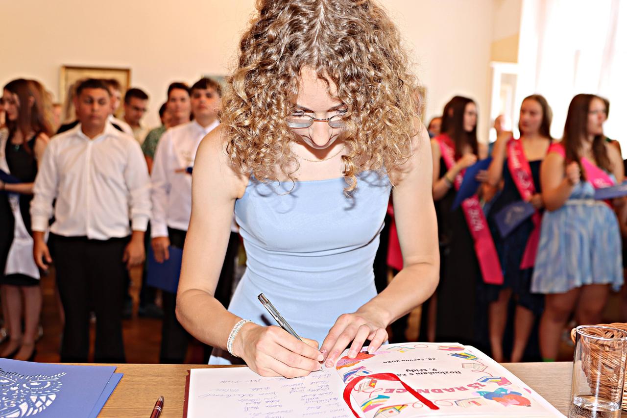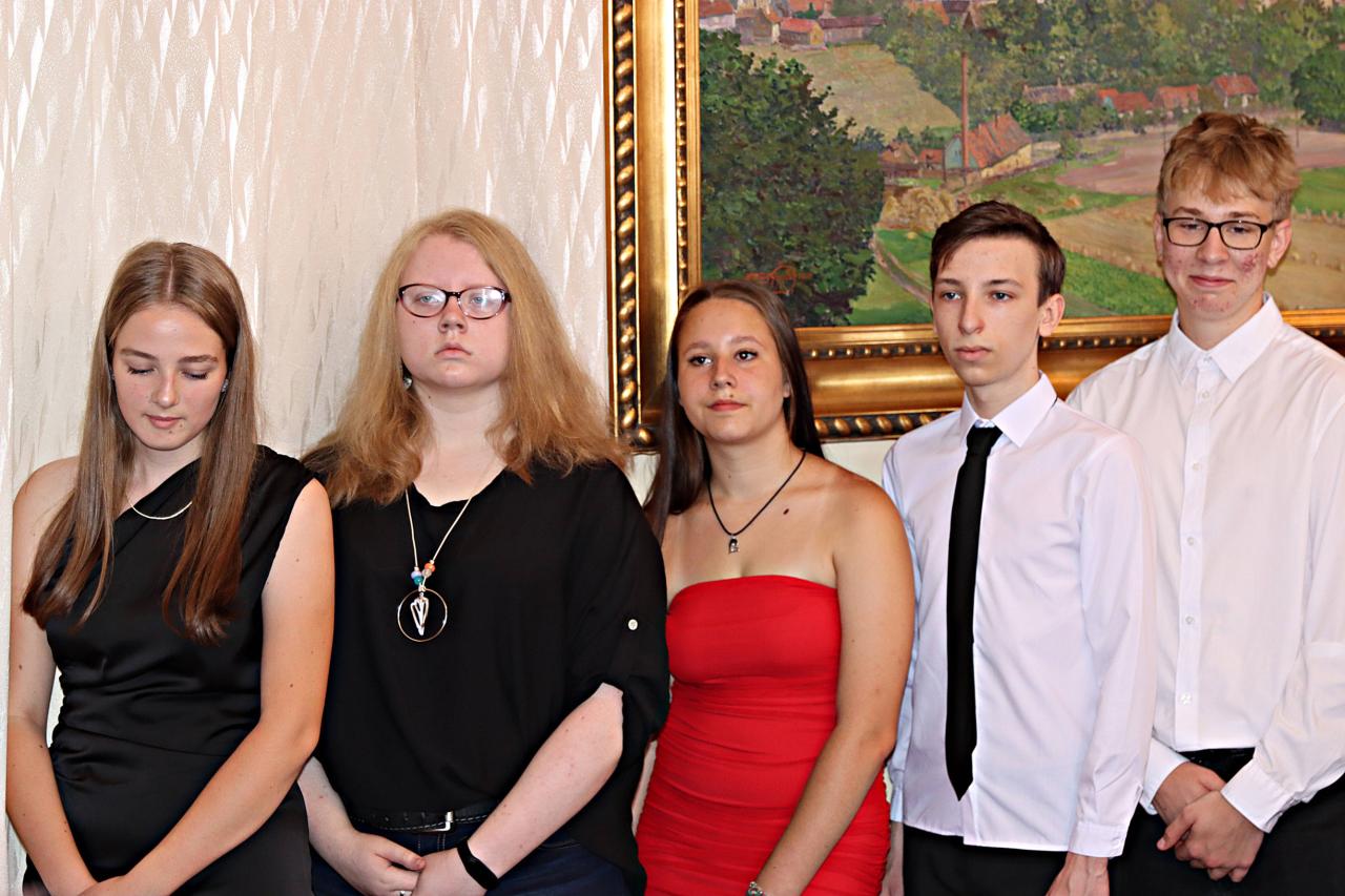 V pátek 28. června 2024 proběhlo v obřadní síní městského úřadu slavnostní vyřazení deváťáků. Paní ředitelka Raková a místostarosta města František Blovský popřáli žákům co nejlepší vstup do nové etapy života. Nechyběl medailonek obou tříd, a poté přišlo na řadu stužkování a podpis do pamětní knihy.